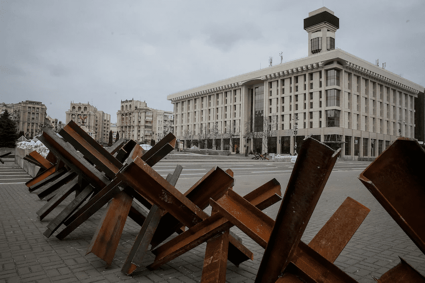 The barricades are made with precision and technical consideration. Because of the limited resources, the group of artists and volunteers produced hedgehogs in different shapes, sizes, and even colors – at some point using old railroad tracks. But as visually stunning as the barricades are due to their form and arrangement, we recognize that the hedgehogs serve a greater and heart wrenching purpose. Bevza reminds us of this reality, saying “It looks like art, but it’s not.”