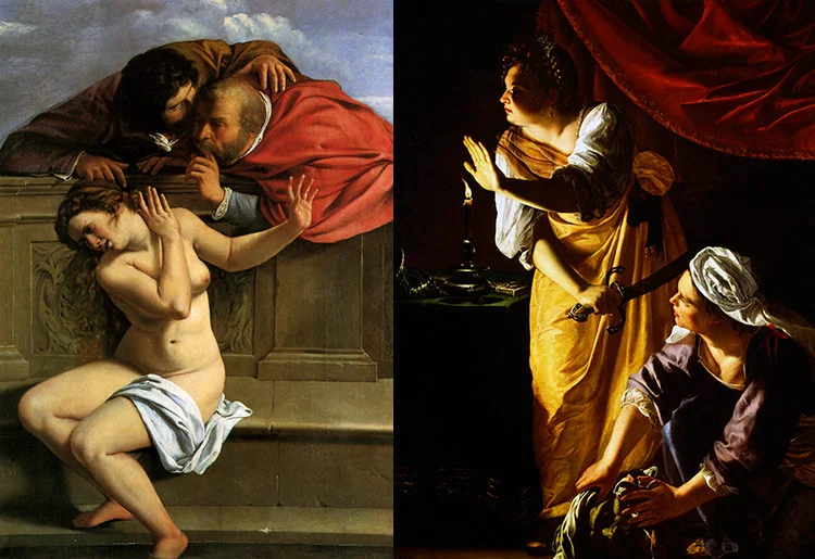 ‘Susanna and the Elders’ (1610), earliest of her surviving works [left]; ‘Judith and Her Maidservant with the Head of Holofernes’ (1523-1525) [right] | Source: historyhit.com