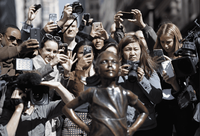 The Fearless Girl was commissioned by the State Street Global Advisors as an ad to bring awareness to gender-diversity in senior leadership roles. The plaque beneath the statue states, “Know the power of women in leadership. SHE makes a difference.”