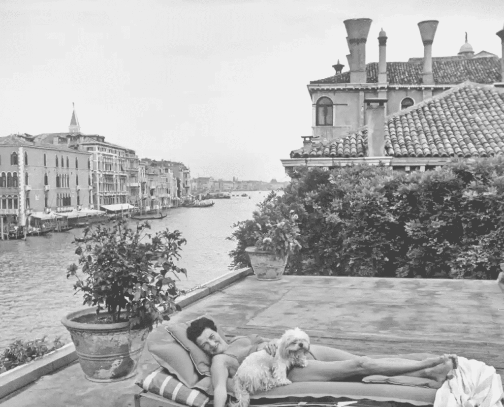 In 1948 Guggenheim was invited to exhibit her collection at the 24th Venice Biennale. It was Europe’s first encounter with American Abstract Expressionism. Ultimately, it turned out that her collection exhibition in the Greek Pavilion was the main attraction of the entire event. In 1951, inspired by this huge success, Peggy made her house and her collection open to the public every summer. Additionally, her years in London, Paris and New York brought an envious group of friends. Stravinsky, Gore Vidal, and Cocteau are merely some of the well-known personas that she welcomed to her salon. In Venice, she felt free and became known as l’ultima dogaressa, or the last female doge, always accompanied by her beloved Lhasa Apsos, wherever she went.