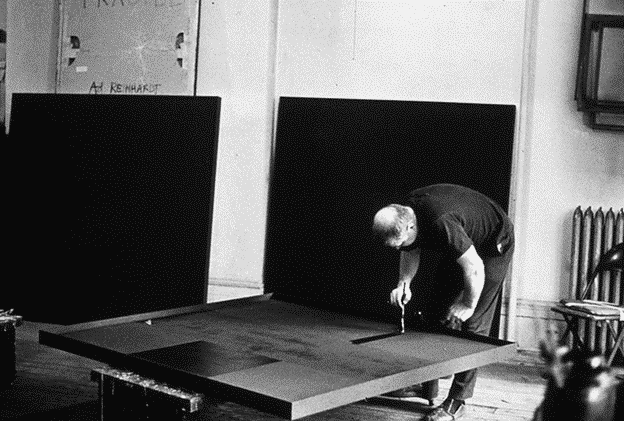 To further explore this characteristic of the color black — the fact that no two black colors are alike — Reinhardt said, “There is a black which is old and a black which is fresh. Lustrous black and dull black, black in sunlight and black in shadow.”