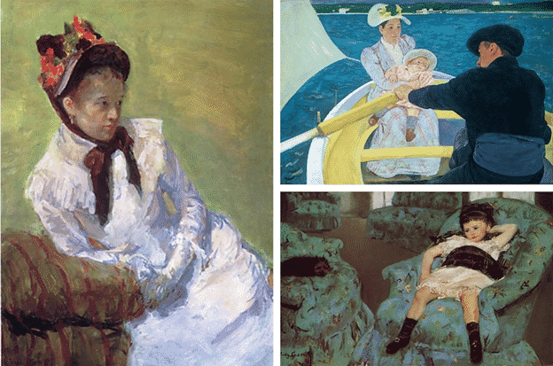 Left: Mary Cassatt, Self-Portrait (1878) (Photo: The Met via Wikimedia Commons), Right: The Boating Party (1893-94) and Little Girl in a Blue Armchair (1878) | Image source: mymodernmet.com