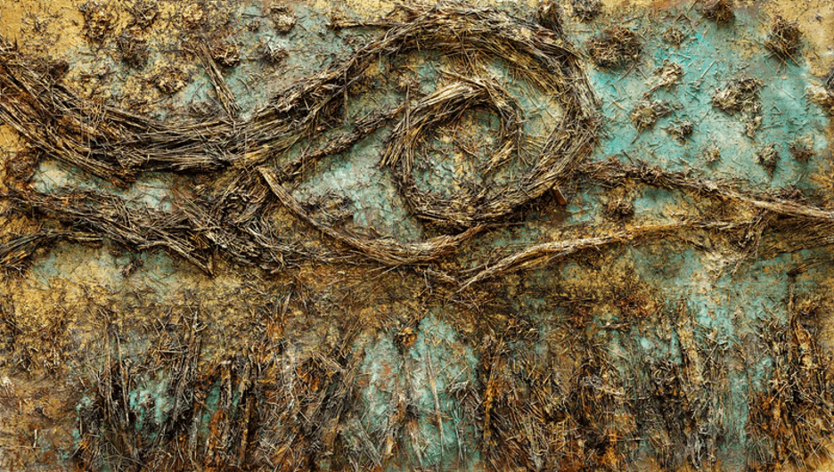 Kiefer’s art demonstrates a meticulous layering technique and imbues his works with a palpable sense of depth and history. Employing a diverse array of materials such as lead, concrete, straw, dried plants, glass, and barbed wire, he deliberately chooses materials not only for their aesthetic quality but also for their symbolic resonance. Kiefer has often described lead, in particular, as “the only material heavy enough to carry the weight of human history.” This choice emphasizes his thematic preoccupations with memory, loss, and the burden of the past. Meanwhile, the use of materials like clay, straws, and dried flowers adds a tactile dimension that evokes the fragility and resilience of the human experience.