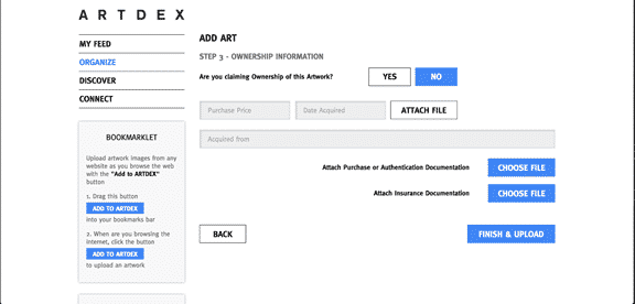 Uploading artwork you own? You can keep track of proof of ownership and purchase details.