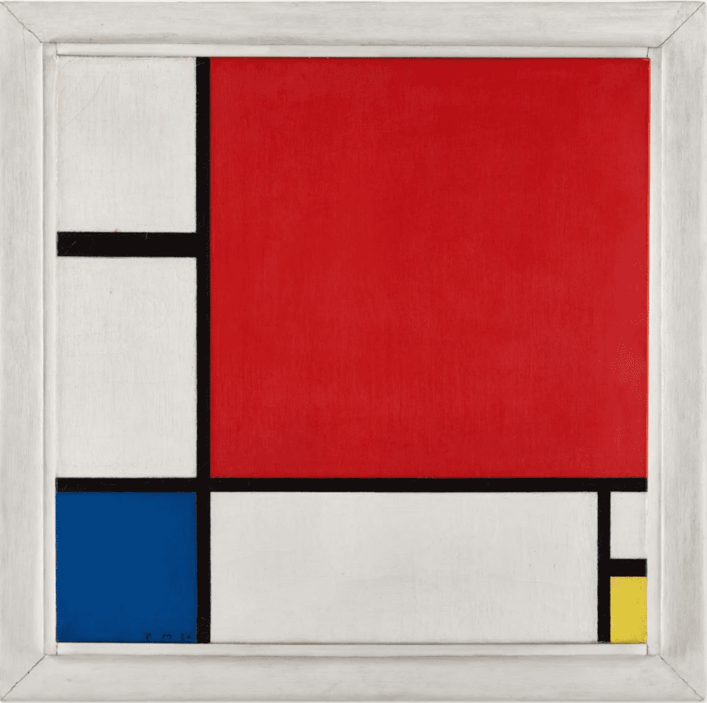 The 1920s marked the dawn of Mondrian’s most distinctive phase, encapsulated in his “compositions.” Mondrian articulated his theory of Neoplasticism, a doctrine underpinning his vision of art as a “pure representation of the human mind,” manifesting in aesthetically purified, abstract forms, with “straight lines” and “clearly defined primary colors” at its core. Through neo-plasticism, Mondrian sought to capture the fundamental essence of reality, purging his compositions of representational distractions. His pieces’ interplayed grids, colors, and spaces elicited a sense of rhythm and equilibrium. Precise yet arbitrary, these canvases created a symphony of visual components that echoed the pulse of existence with asymmetrical squares and intersecting lines that radiated a sense of balance.